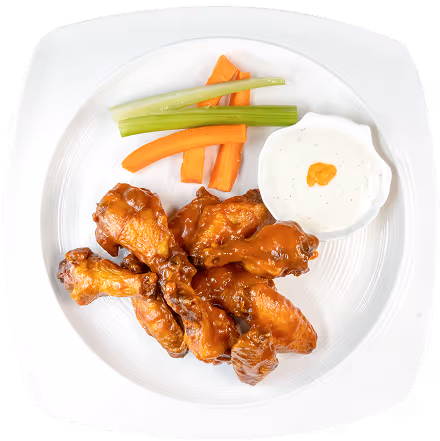 Choice of sauces: Siracha honey, hot, mild, B.B.Q, lemon pepper, Jerk, curry sauce. Opciones de salsa: Salsa de miel siracha. picante, picante medio, B.B.Q, pimienta con limón, Jerk, curry.